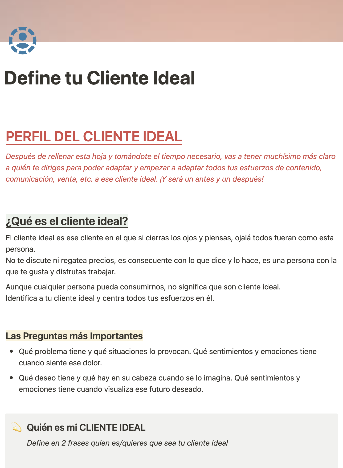 Descarga Gratis la Plantilla de Notion de Cliente Ideal que necesitas para vender más.
